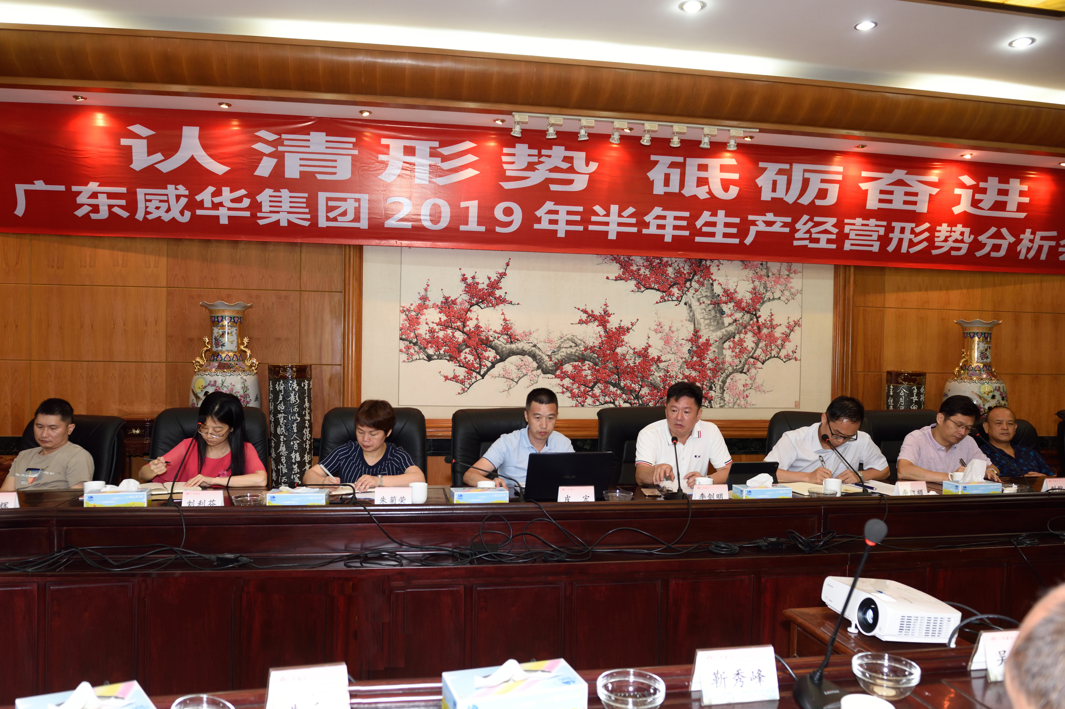 2019年7月11日,集團(tuán)公司在梅州威華園召開2019年半年生產(chǎn)經(jīng)營形勢分析會議,集團(tuán)公司總經(jīng)理李劍明、部門負(fù)責(zé)人以上管理干部,各下屬企業(yè)負(fù)責(zé)人等38人參加了會議,集團(tuán)公司常務(wù)副總經(jīng)理李凱順主持會議。會議聽取和討論了威華茶博園設(shè)計(jì)方案,各企業(yè)第一負(fù)責(zé)人總結(jié)了上半年工作、匯報了下半年工作計(jì)劃和目標(biāo),分析了各自面臨的生產(chǎn)經(jīng)營形勢,并提出了應(yīng)對方案。李劍明總經(jīng)理對各企業(yè)工作情況做了點(diǎn)評,對各企業(yè)上半年主動作為,圓滿完成上半年考核目標(biāo)給予了肯定,對下半年工作提出了要求。